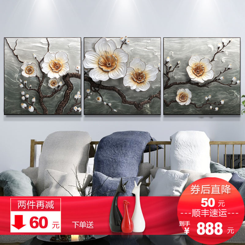 棕榈树 Palmtree 壁饰棕榈树 Palmtree 客厅装饰画沙发背景墙画3d立体浮雕三联挂画无框餐厅壁画欧式梵高三联杏花青色 60 60cm 价格图片品牌报价 苏宁易购棕榈树旗舰店